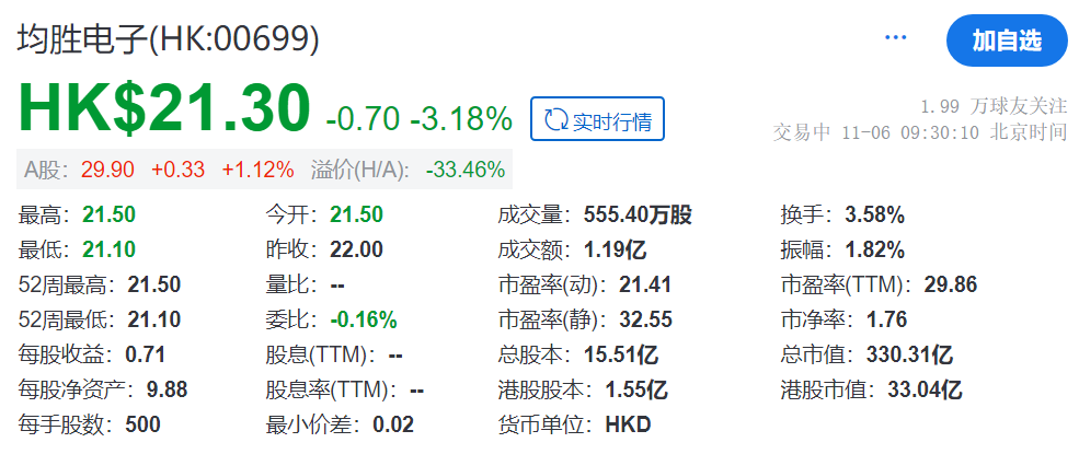 瑞财经 王敏 11月6日,均胜电子(HK:00699)在港交所挂牌上市,中金公司和瑞银集团为联席保荐,开盘破发跌超3%,总市值330.31亿港元。