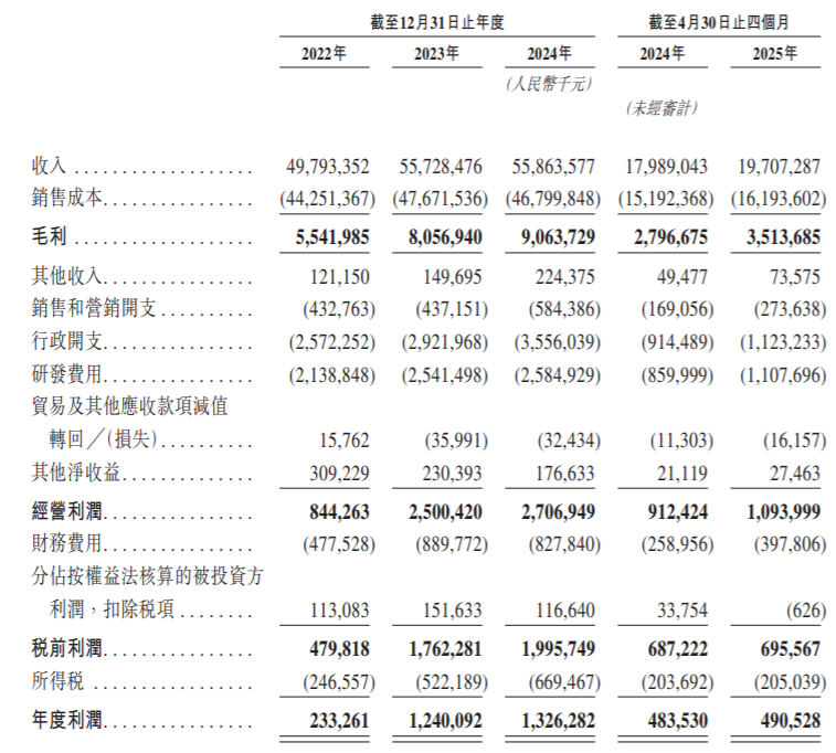 时间拉长,2022年、2023年、2024年,均胜电子分别录得收入约为497.93亿元、557.28亿元、558.64亿,同期利润分别约为2.33亿元、12.40亿元、13.26亿。