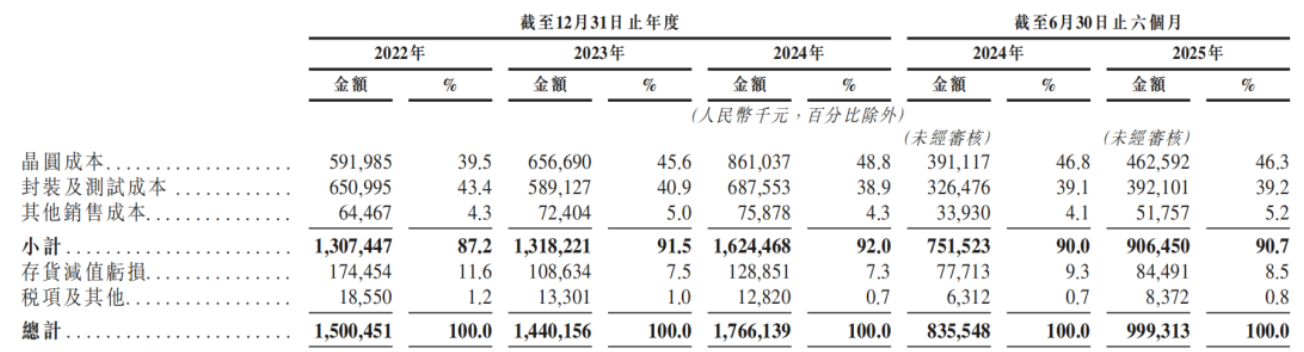 圣邦股份的供应商主要包括晶圆代工厂以及封测服务商,晶圆成本、封装及测试成本占据其销售成本的大头。各期,圣邦股份销售成本分别为15.01亿元、14.40亿元、17.66亿元、9.99亿元,其中晶圆成本、封装及测试成本合计占比82.9%、86.5%、87.7%、85.5%,2022年-2024年,占比和金额双双走高。需要警惕的是,一旦主要供应商出现产能不足、产品质量问题或者合作关系发生变动,都可能对圣邦股份的生产和销售造成影响。