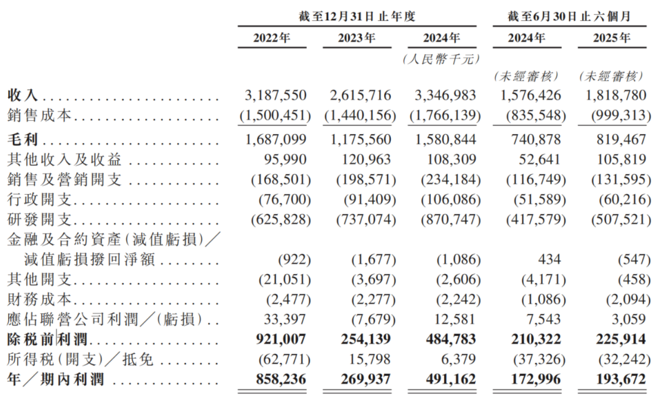 报告期内,圣邦股份持续盈利,净利润分别为8.58亿元、2.70亿元、4.91亿元、1.94亿元,2025年上半年同比增长11.95%,高于毛利增速但低于营收增速。