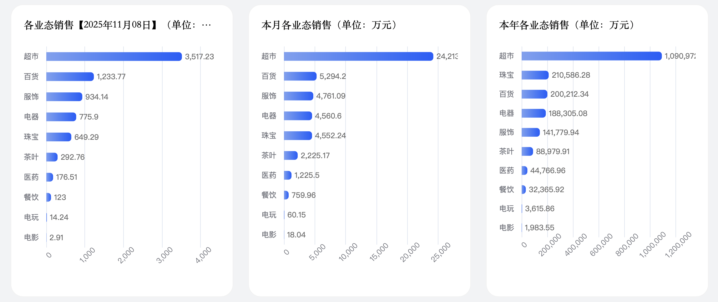 具体来看,胖东来多个主营业态均实现销售额破亿。其中,超市业态以109.1亿元的销售额领跑,珠宝、百货、电器、服饰业态紧随其后,销售额分别为21.06亿元、20.02亿元、18.83亿元、14.18亿元。