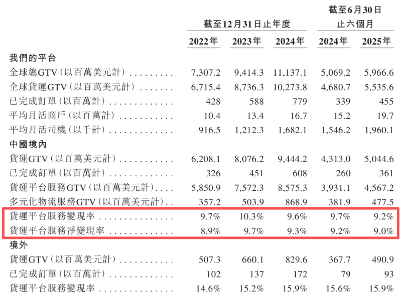 更关键的隐患在于,其主营业务的造血能力正在减弱。货拉拉收入严重依赖货运平台服务(主要由司机佣金和会员费构成),虽然业务贡献比例过半,但作为核心指标的中国内地货运平台服务变现率已从2023年的10.3%一路降至2025年的9.2%。在监管持续引导降低司机成本的大背景下,这一下滑趋势或将持续。