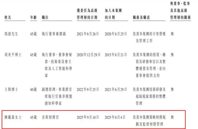 值得关注的是,45岁CFO陈丽嘉,2025年8月加入公司并于9月获委任为首席财务官,负责集团策略财务规划及监督财务管理。