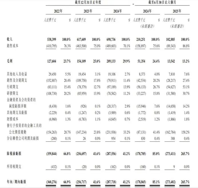 2022年、2023年、2024年和2025年前六个月,智慧互通的营业收入分别5.38亿、6.18亿、6.99亿和1.03亿元,前三年营收稳步增长;相应的净亏损分别为3.60亿、2.57亿、2.88亿和2.73亿元,三年半累计亏损11.78亿元。