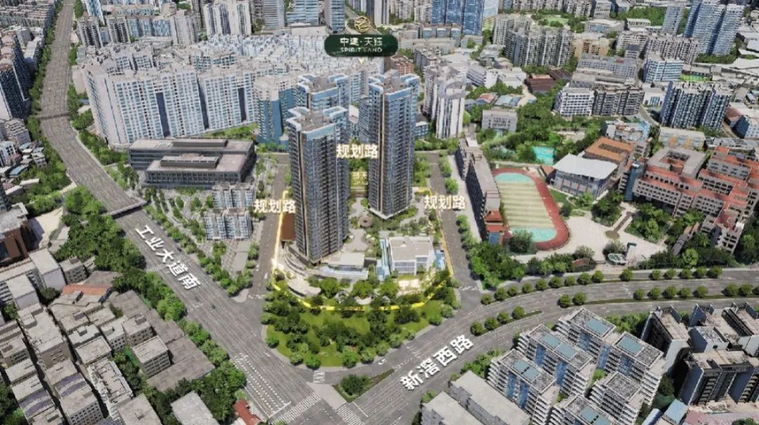 中建天钰,位于海珠工业大道与新窖西路交汇处。其所在地块,是2023年12月中建信和以底价19.83亿元拿下的海珠区新滘西路以北AH050727地块,折合楼面价3.71万元/㎡。