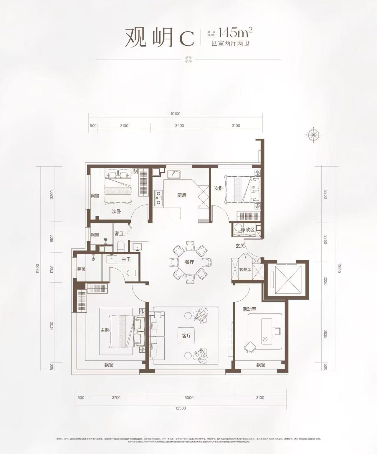 中央两栋5#、10#楼为顶配145㎡户型,共160套;