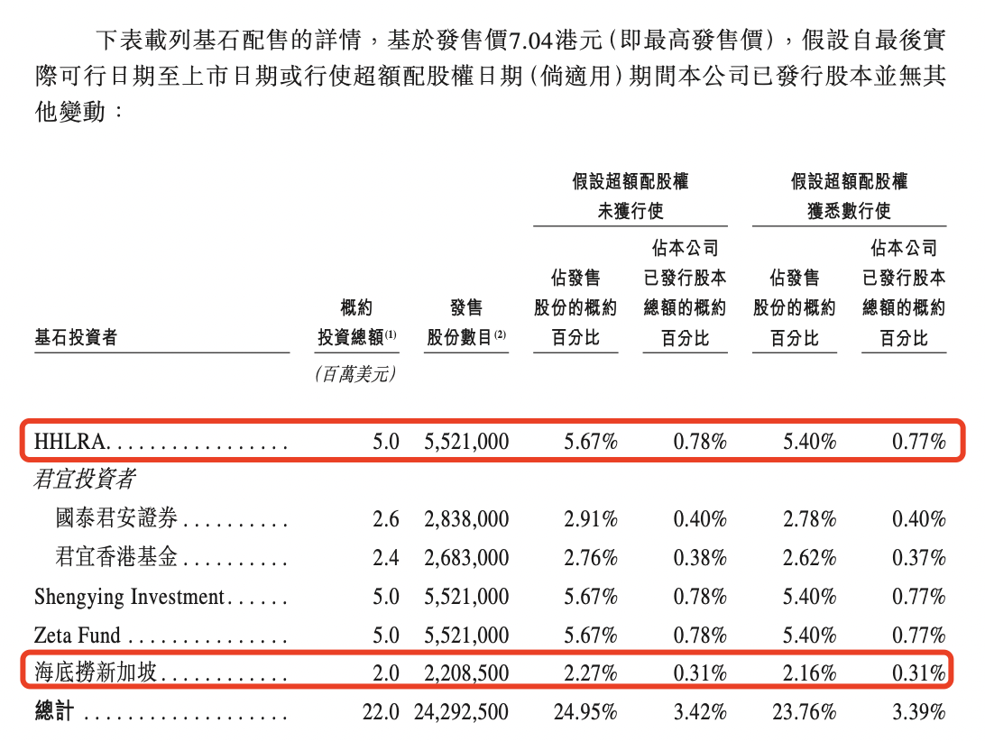 值得一提的是,遇见小面此次IPO招股引入5名基石投资者,合共认购2200万美元的发售股份,基石投资者阵容豪华,以长期价值投资著称的高瓴资本与中式餐饮龙头海底捞联合入局。