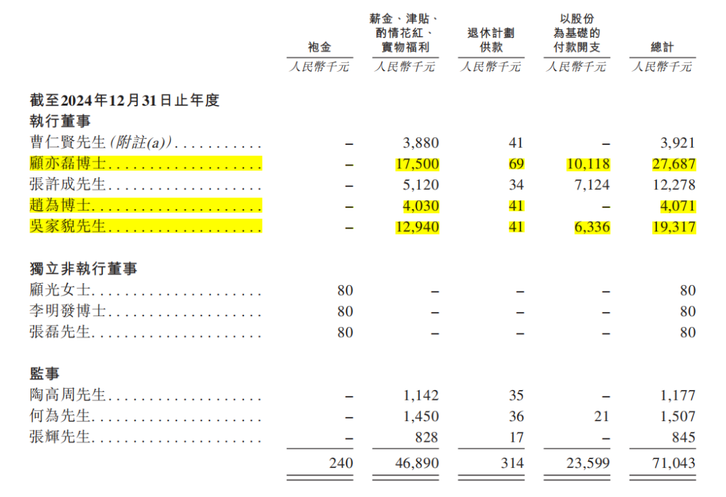 不过,递表前,赵为持有公司975.64万股股份,占比0.47%,是除曹仁贤以外,公司高管持股最多的;顾亦磊、吴家貌则均持股0.03%。根据11月3日收盘后市值计算,赵为所持股权价值约为19.43亿元。