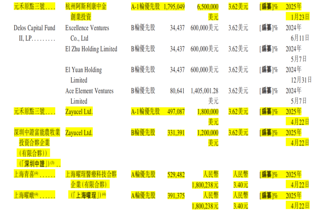 主要投资机构包括国药创新、上海青喜、上海曜暾、上海联新、元禾原点三号、张江医药、南京清松、苏州华盖、杭州阿斯利康中金、华金领尚等。穿透后股东包括健壹资本、幂方资本、上海联新资本、元禾控股、原点投资、浦东国资委、清松资本、华盖资本(600739.SH)、中金公司(3908.HK、601995.SH)、珠海华金资本(000532.SZ)等。