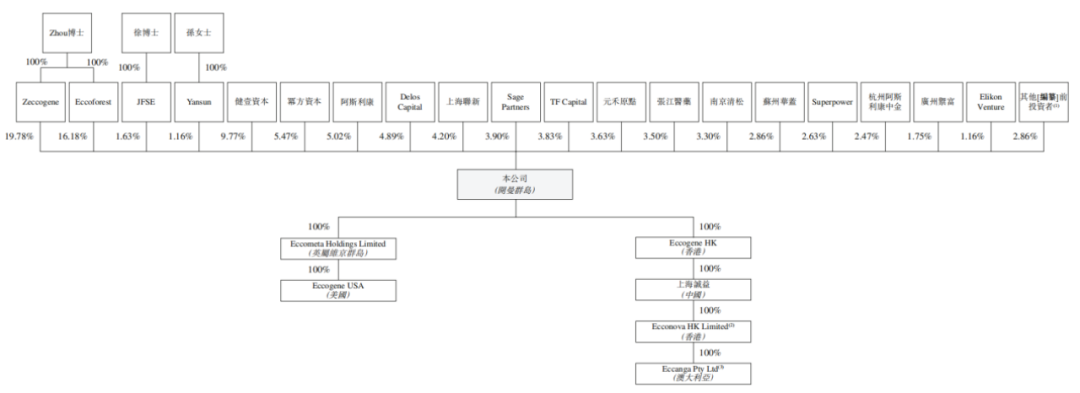 Jingye Zhou(周敬业)及其全资持有的Zeccogene、徐剑锋及其全资持有的JFSE于2021年12月16日订立一致行动协议。通过一致行动协议以及代为行使Yansun所持表决权,递表前,周敬业直接及间接控制公司38.76%股份。