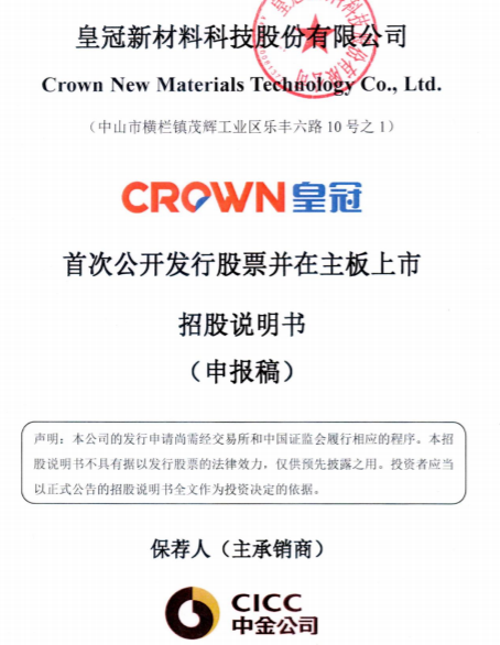 瑞财经 王敏 11月28日,据深交所官网,皇冠新材料科技股份有限公司(以下简称“皇冠新材”)深主板IPO获受理,保荐机构为中金公司,保荐代表人为张坚柯、陈振华。