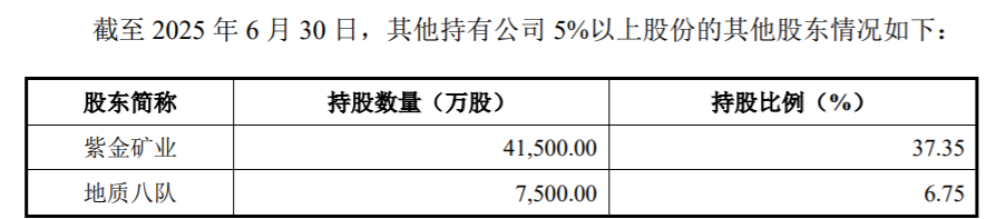 此外,紫金矿业集团股份有限公司持股为37.35%,福建省第八地质大队持股为6.75%。