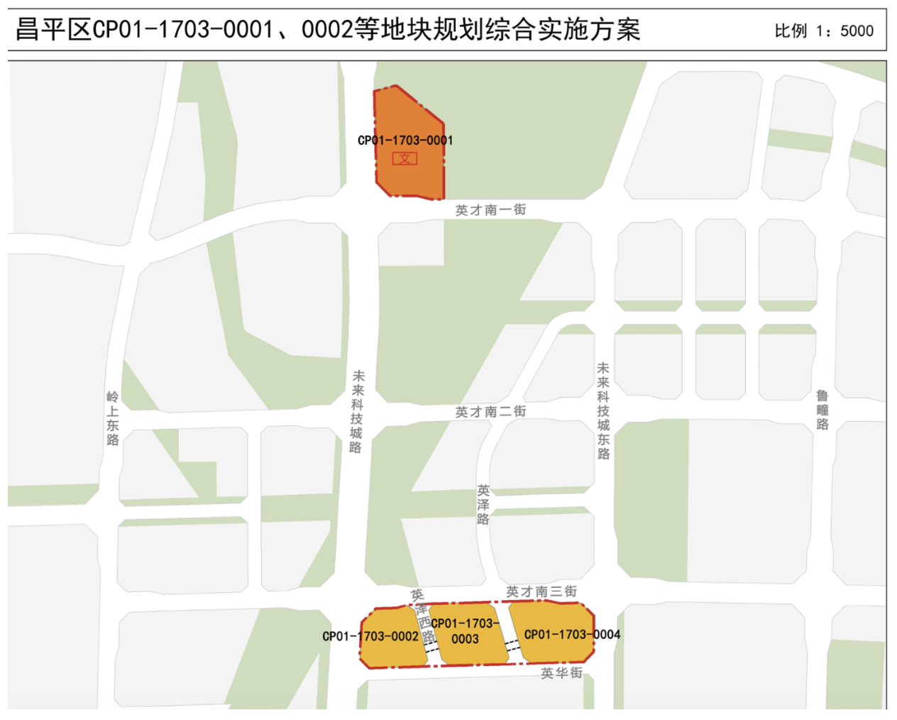 今年8月初,昌平集中公示了6幅居住用地的综合实施方案,其中就包括1703-0001、0002地块。