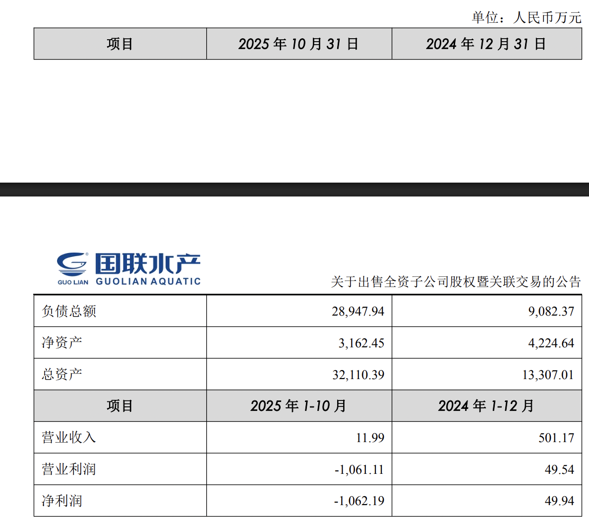 国联水产3.15亿元剥离新盈食品,控股股东接盘