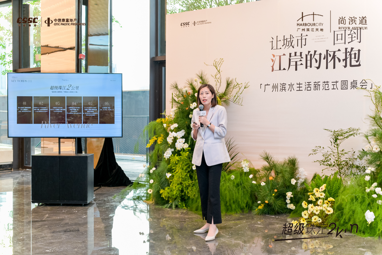 中信泰富地产广州营销负责人崔丽丽总聚焦「尚滨道」产品,揭示其如何重构滨水豪宅定义。她提出“归属感三要素”:零线滨江的资源独占性、四体合一的功能复合性、大师设计的审美前瞻性,让超级珠江2公里从地理概念升华为情感领地。船台是兑现的起点,未来这里必将是世界级的目的地,而拥有尚滨道,则是拥有超级珠江2公里的归属地。