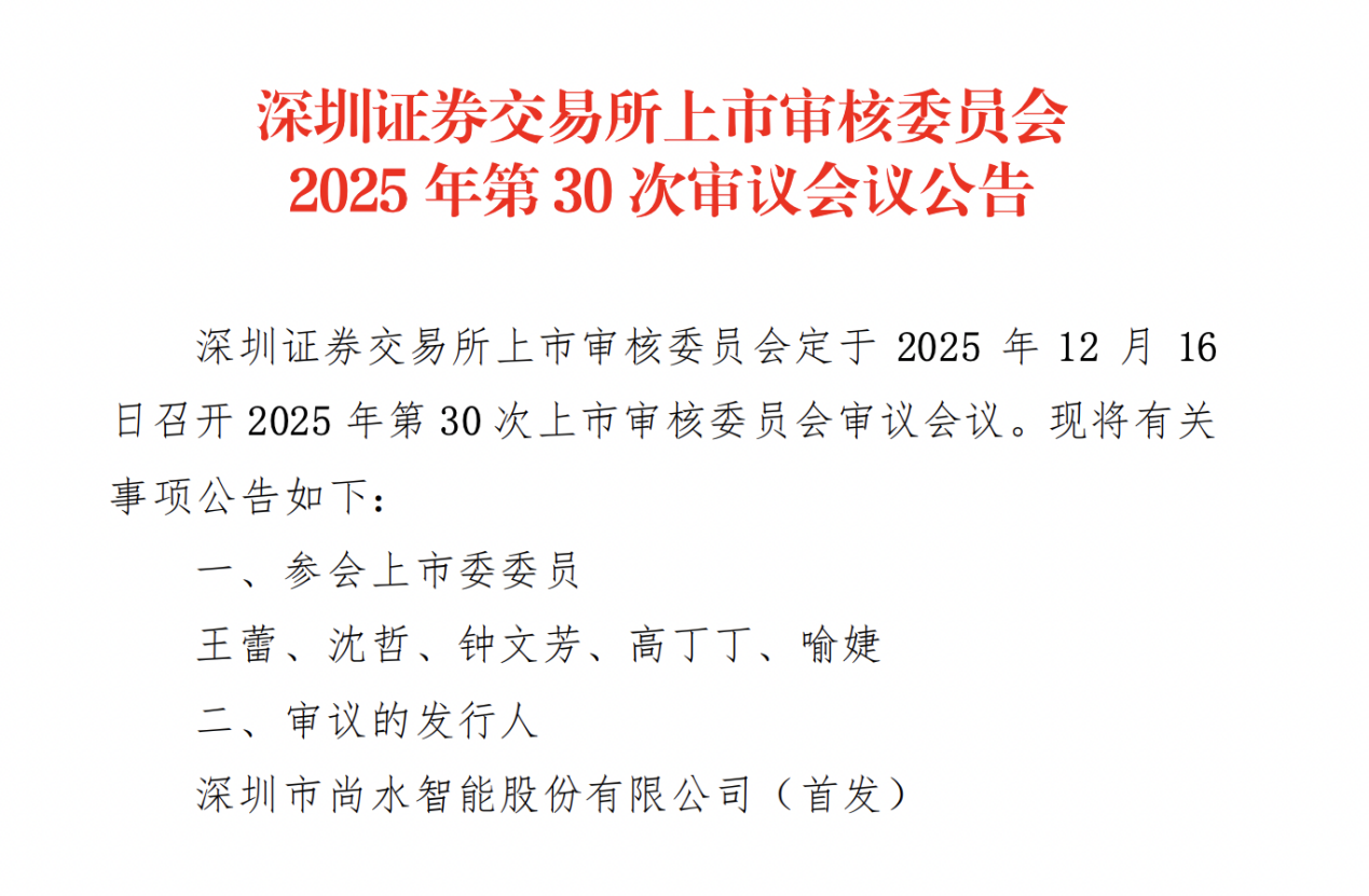 瑞财经 刘治颖 据深交所,深圳市尚水智能股份有限公司(以下简称:尚水智能)创业板IPO将于12月16日上会迎考,保荐机构为国联民生证券承销保荐有限公司,保荐代表人为马小军、熊岳广,会计师事务所为中汇会计师事务所(特殊普通合伙)。