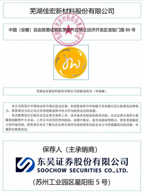 瑞财经 王敏 12月15日,据北交所官网,芜湖佳宏新材料股份有限公司(以下简称“佳宏新材”)北交所IPO获受理,保荐机构为东吴证券,保荐代表人为王海阔、徐秋鸣。