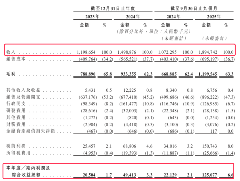 截至2025年9月30日止九个月,半亩花田营收进一步增长至18.95亿元,较2024年同期的10.72亿元增长76.7%;经调整净利润(非国际财务报告准则指标)达到1.48亿元,较2024年同期的4970万元增长197.2%。毛利率为63.3%。