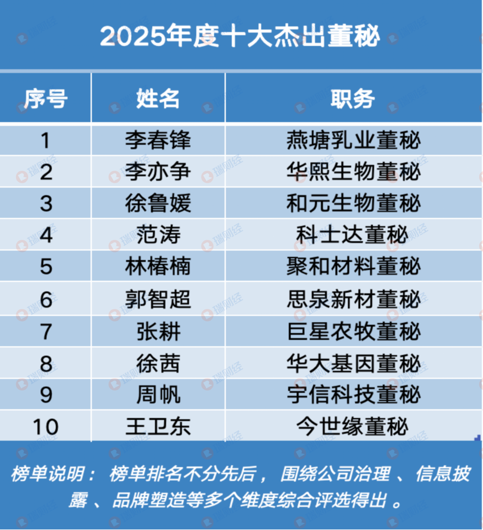 “2025年度十大杰出董秘”榜单围绕公司治理、信息披露、品牌塑造等多个维度综合评选得出。
