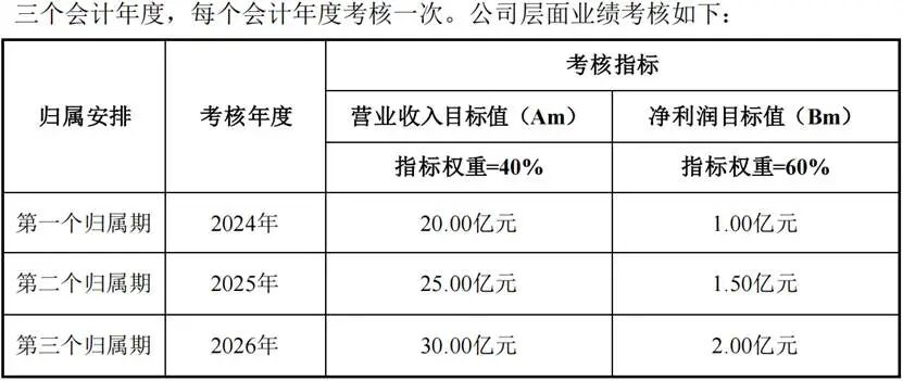 其中提及,2024年至2026年,西菱动力的营业收入目标值为20亿元、25亿元、30亿元,对应期间的净利润目标值为1亿元、1.5亿元、2亿元,且营业收入与净利润指标权重分别为40%、60%。