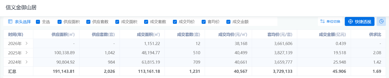 信义金御山居于2024年首次开盘,该年内就网签了超700套房。