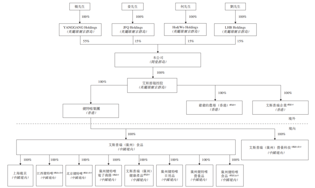 递表前,爷爷的农场无外部投资者,公司由杨钢、姜福全、何建农、刘海波各自通过其全资持有的持股平台YANGGANG Holdings、JFQ Holdings、Ho&Wo Holdings及LHB Holdings,分别持有公司55%、15%、15%及15%股权。