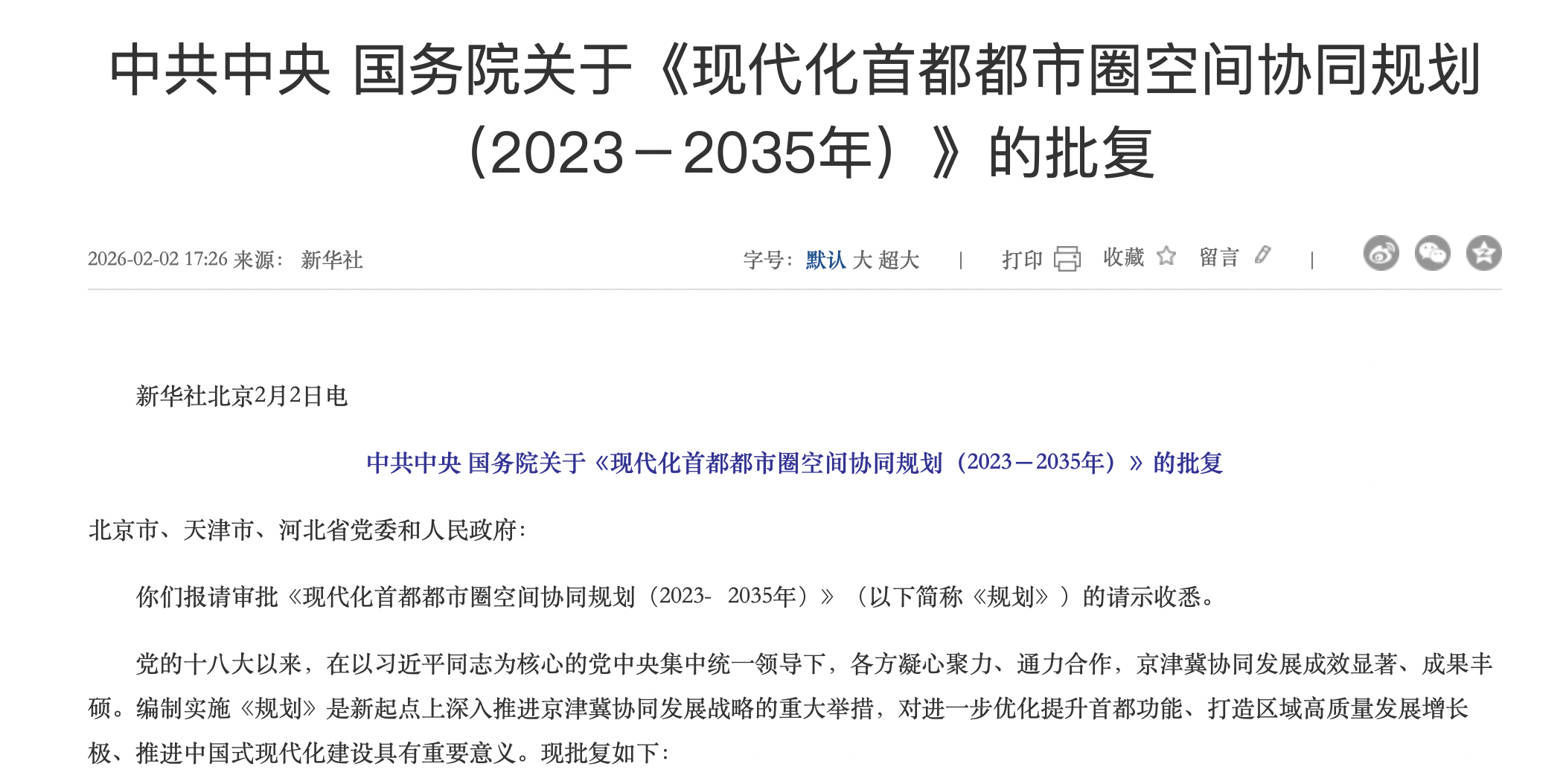乐居财经 吴文婷 2月2日,中共中央、国务院批复同意《现代化首都都市圈空间协同规划(2023-2035年)》(以下简称《规划》)。