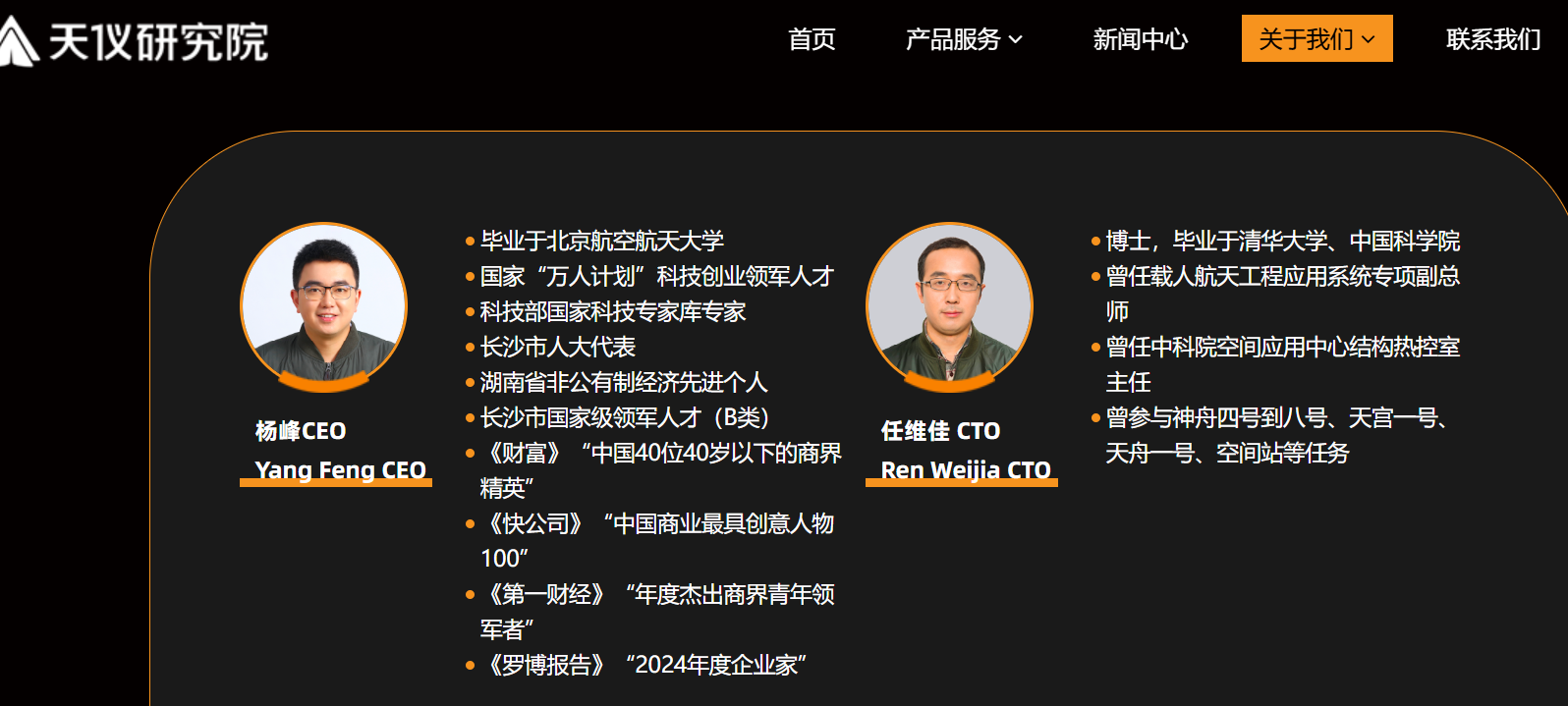 公司官网介绍,天仪研究院是中国领先的SAR卫星星座运营商,致力于为用户提供极致性价比的SAR星座建设和SAR卫星数据一体化服务。杨峰任CEO,任维佳任CTO。