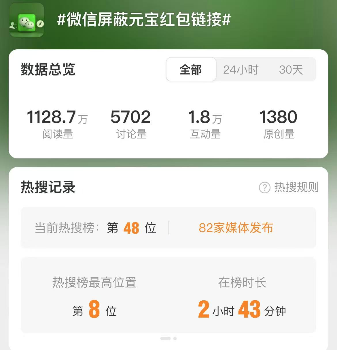 当日,微信“封杀”元宝,引发外界关注并登上微博热搜。