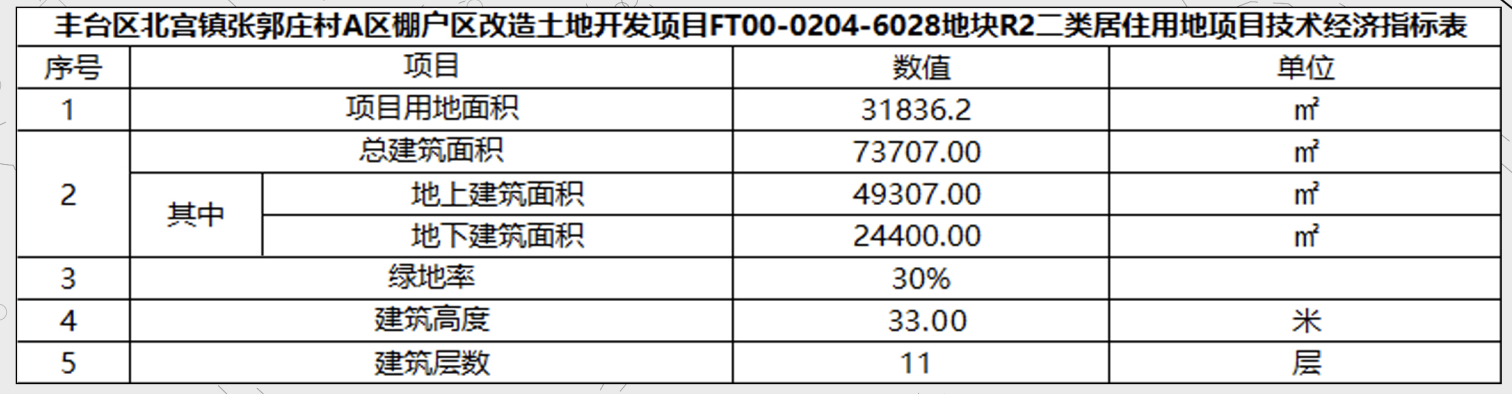 项目位于丰台区北宫镇,总用地面积约3.18公顷,总建筑面积约7.37万㎡,其中地上建面4.93万㎡,地下约2.44万㎡,建筑高度33米(最高),绿地率30%。