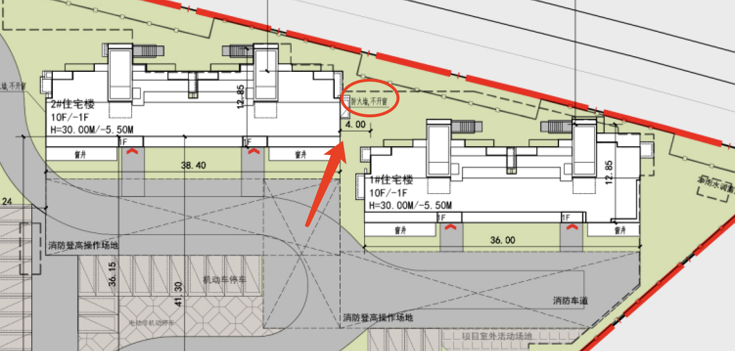 例如东北角的1#楼和2#楼之间,距离仅有4米。