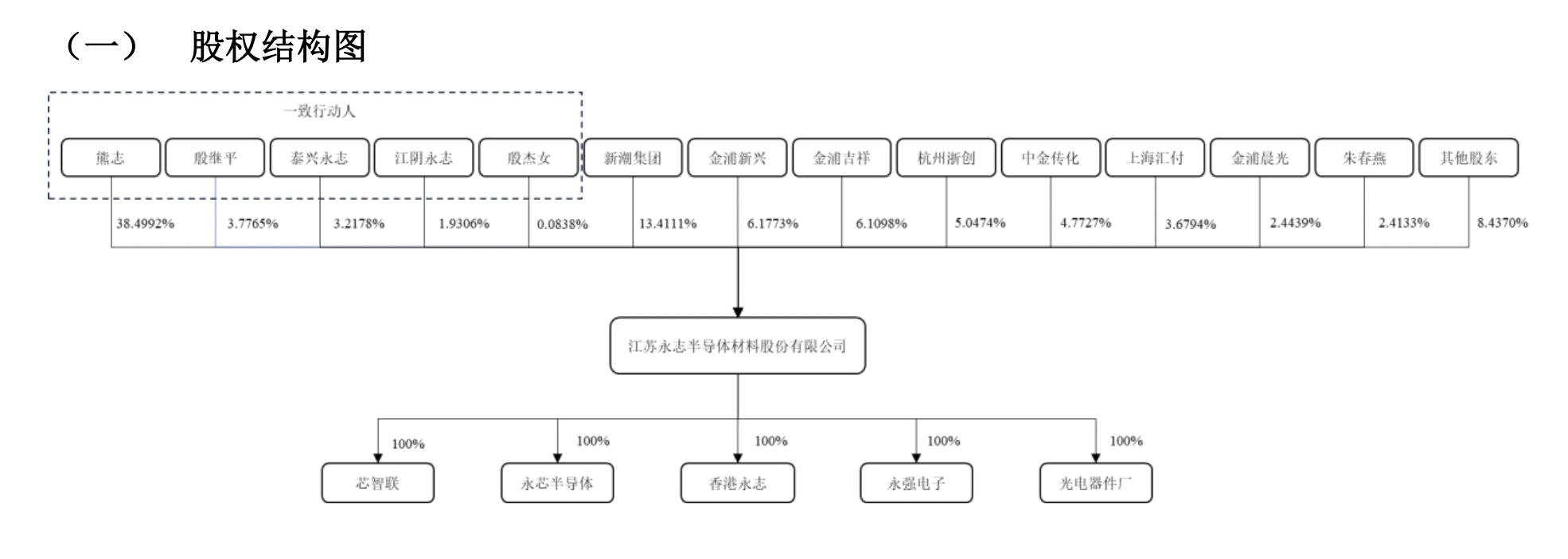 据公开转让说明书显示,永志股份实际控制人为熊志,熊志直接持有公司38.5%股份,并担任江阴永志、泰兴永志执行事务合伙人,合计控制公司4946.66万股股份的表决权,占比43.65%。此外,其一致行动人殷继平、殷杰女分别直接持有公司3.78%、0.08%的股份。熊志系殷继平姐夫、殷杰女之配偶。
