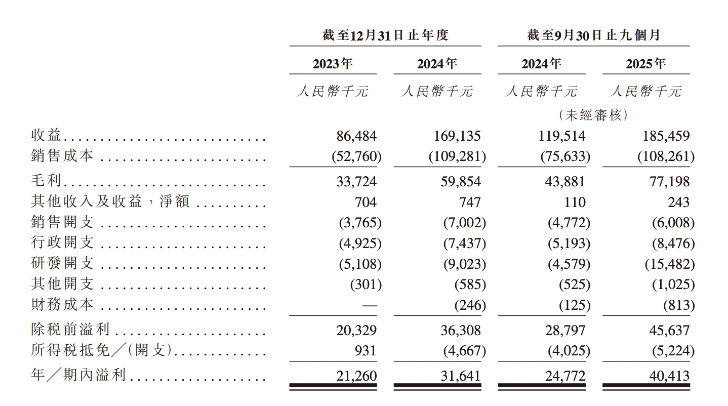 2025年前三季度,第零智能收益1.85亿元,同比增长55.18%;期内溢利为4041.3万元,同比增长63.14%;毛利率为41.6%。