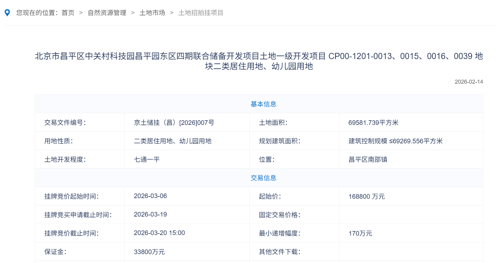 16.88亿起!昌平别墅级地块正式挂牌,3月20日开拍