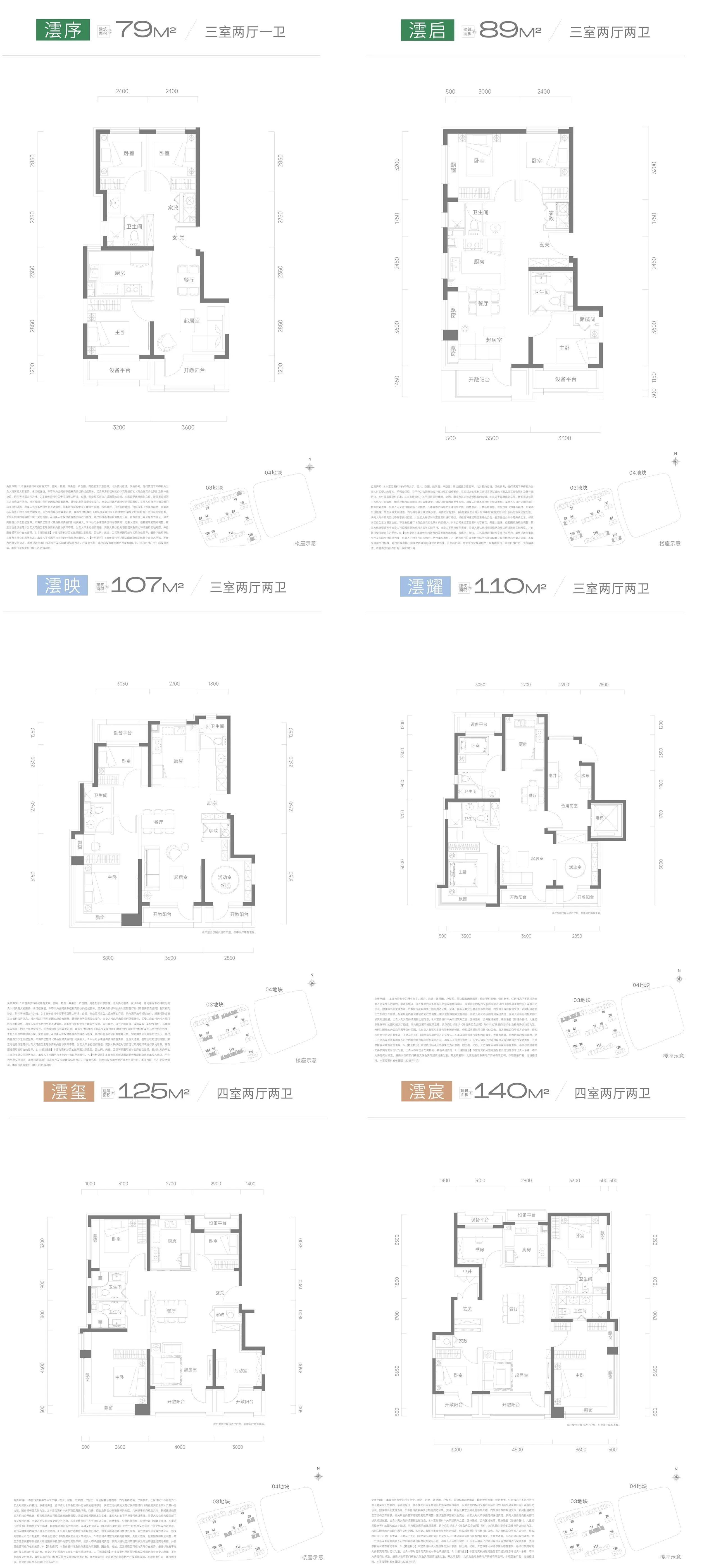 调整之后,户型建面为79/89/107/110㎡三居、125/140㎡四居。