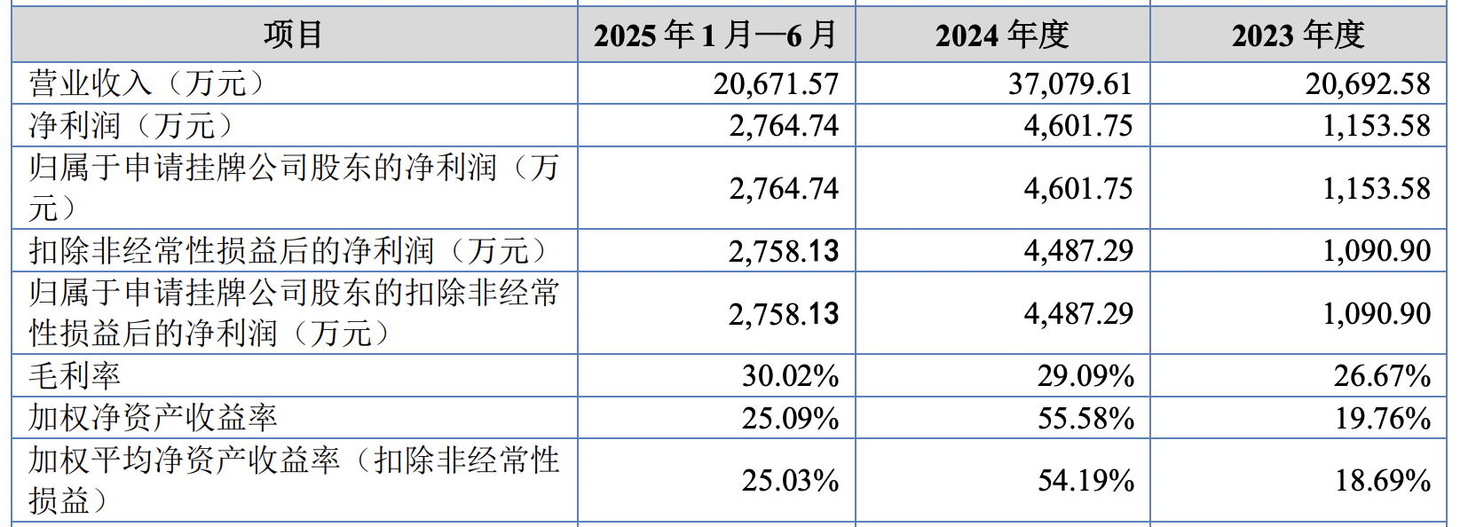 2023年、2024年及2025年上半年,川岛装备营业收入分别为2.07亿元、3.71亿元、2.07亿元,净利润分别为1153.58万元、4601.75万元、2764.74万元,毛利率分别为26.67%、29.09%、30.02%。