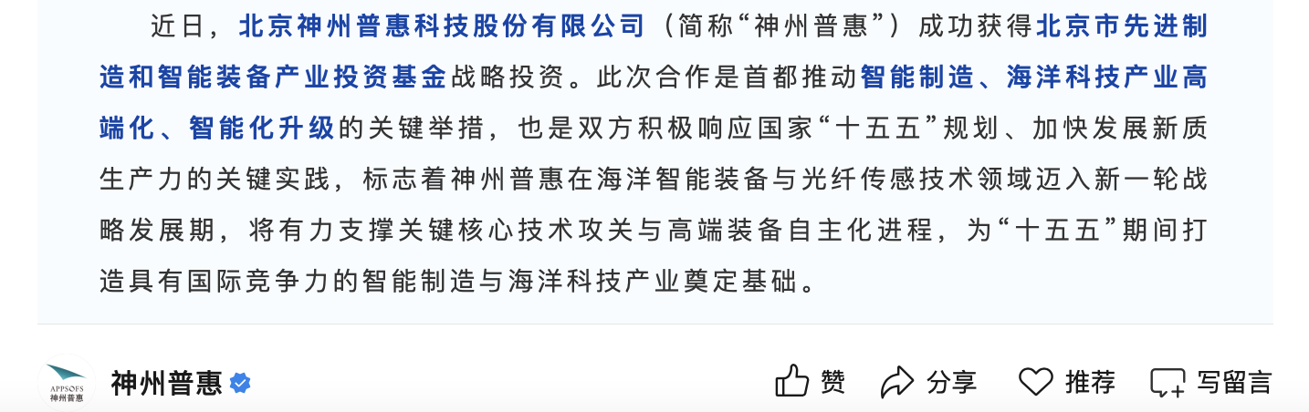 瑞财经 吴文婷 近日,北京神州普惠科技股份有限公司(以下简称“神州普惠”)宣布获得北京市先进制造和智能装备产业投资基金战略投资。