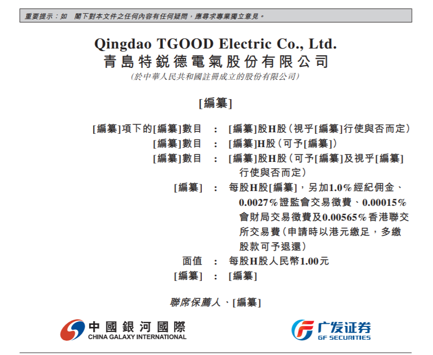 瑞财经 王敏 2月26日,据港交所披露,青岛特锐德电气股份有限公司(以下简称“特锐德”)向港交所主板递交上市申请书,中国银河国际、广发证券为其联席保荐人。