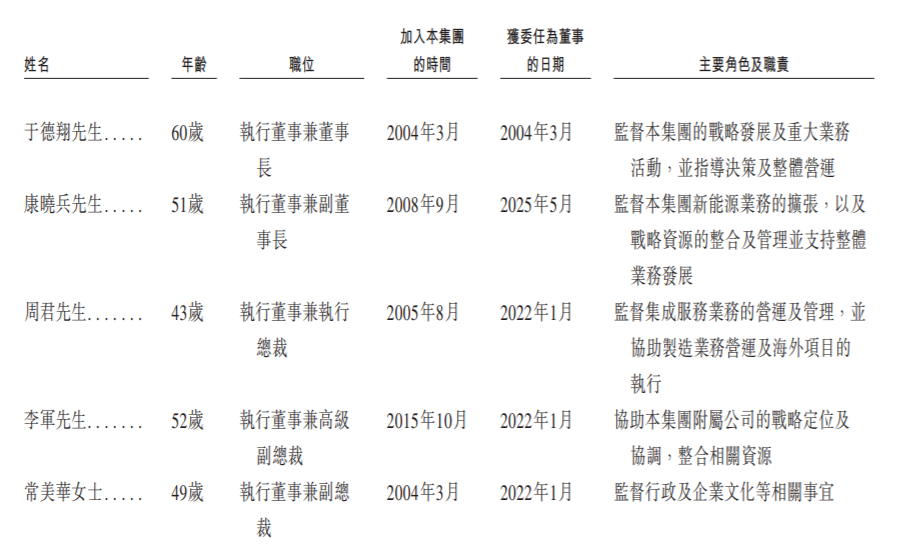 于德翔,60岁,为执行董事兼董事长。彼创立集团,并于2004年3月获委任为董事。他亦于集团多家附属公司担任董事及管理职务,主要负责监督集团的战略发展及重大业务活动,并指导决策及整体营运。