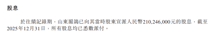 于往绩记录期,山东沪鸽已向其当时股东宣派2.1亿元的股息,截至2025年12月31日,所有股息均已悉数派付。
