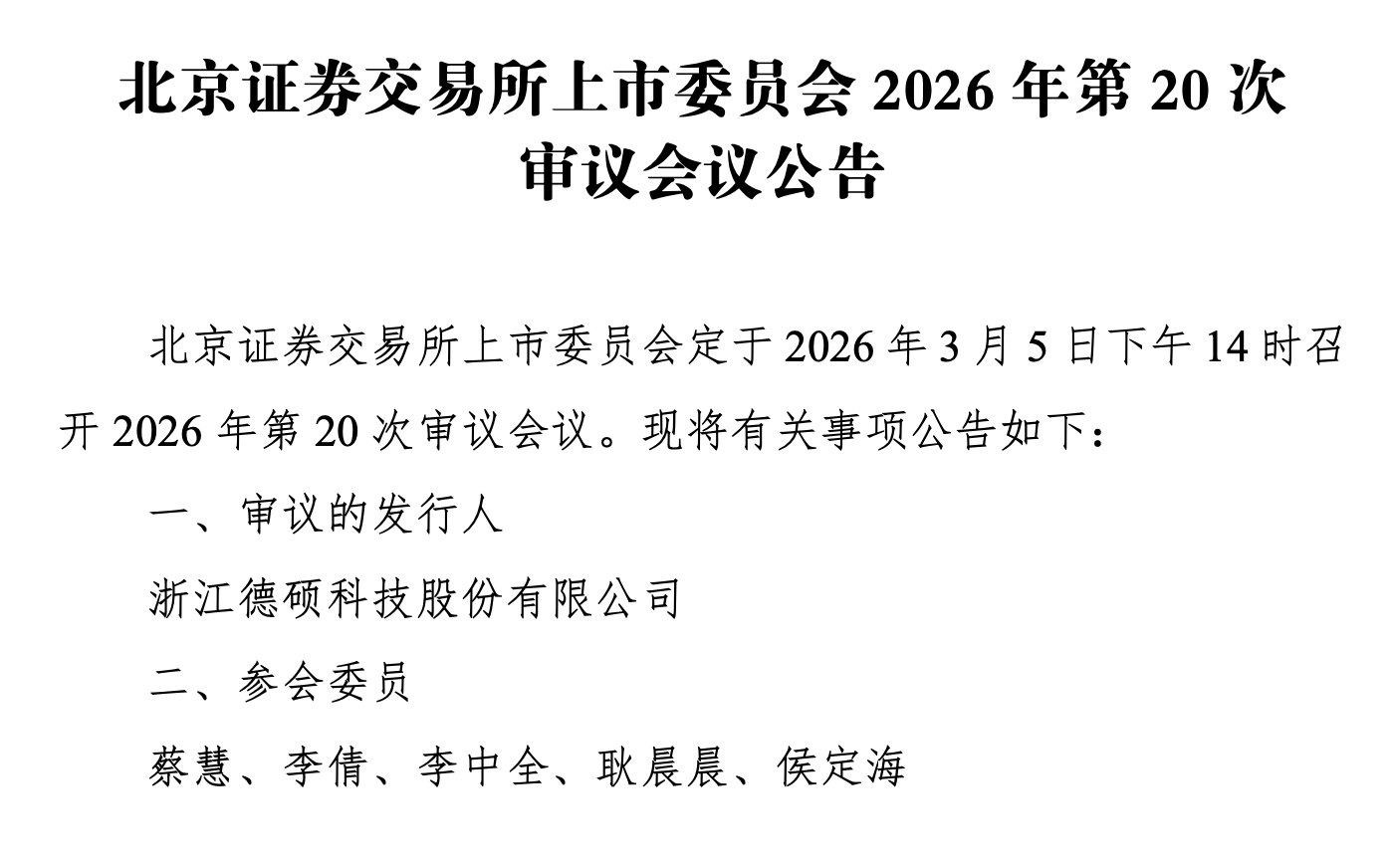 瑞财经 吴文婷 3月2日消息,浙江德硕科技股份有限公司(以下简称“德硕科技”)北交所IPO将于2026年3月5日上会,保荐机构为国泰海通证券股份有限公司。