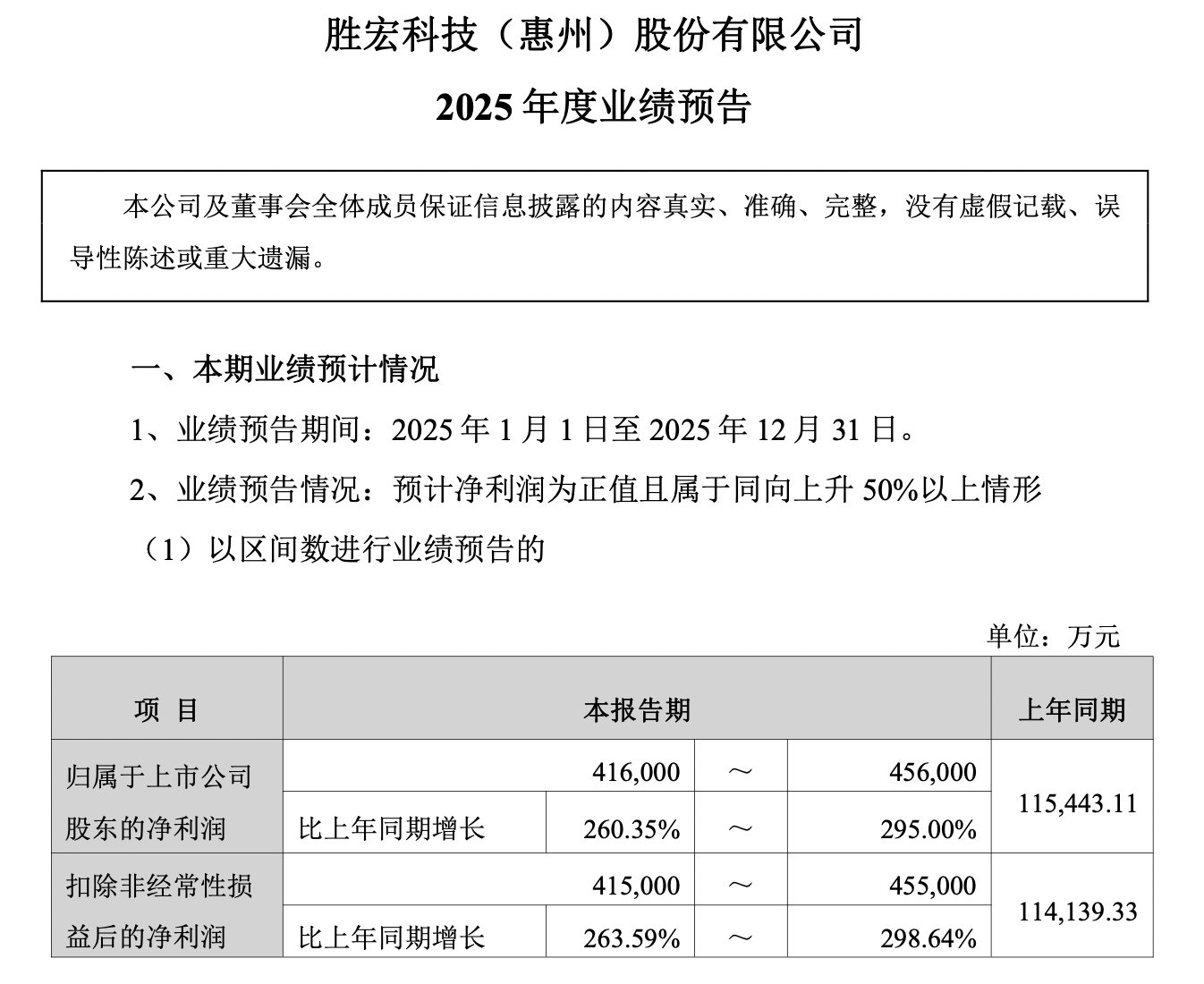 胜宏科技预计2025年归母净利润为41.6亿元至45.6亿元,同比增长260.35%至295%,实现近三倍增长。