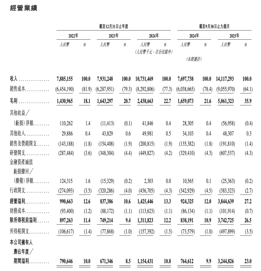 据招股书,2022年-2024年,胜宏科技实现收入分别为78.85亿元、79.31亿元、107.31亿元;期内溢利分别为7.91亿元、6.71亿元、11.54亿元。