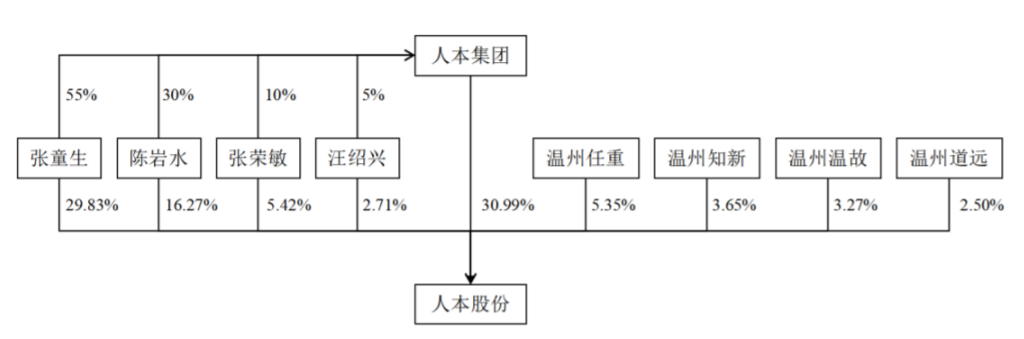 自2020年9月起,人本股份的股权结构再未发生过变动,由人本集团、张童生、陈岩水、张荣敏、汪绍兴合计持有85.23%,而上文提到,人本集团由张童生、陈岩水、张荣敏、汪绍兴持有。