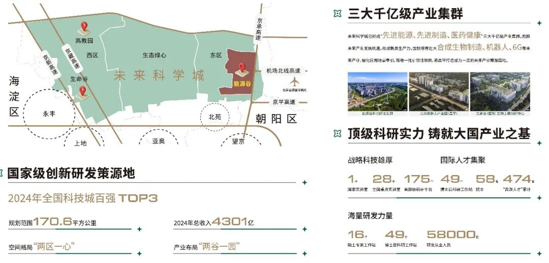 未来科学城聚集了5.8万名科研人员,是名副其实的“大国重器”所在地;医药健康、先进能源、先进制造——三大千亿级产业集群在此扎根;2024年,企业总营收突破4301亿元,跻身全国科技城三强。