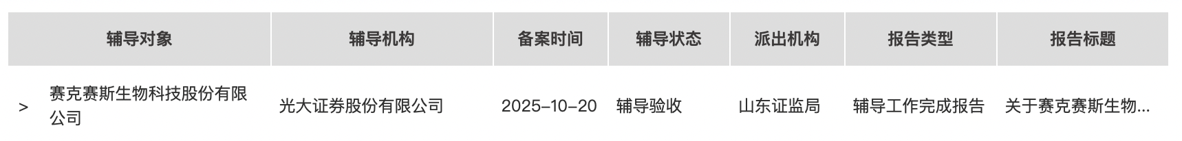 据了解,赛克赛斯于2025年10月20日启动IPO,光大证券共开展一期辅导工作。