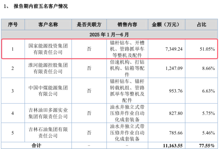 期内,国家能源投资集团是景隆智装的最大客户,销售占比分别为37.91%、39.39%、51.05%。客户集中度较高,且呈现升高趋势。