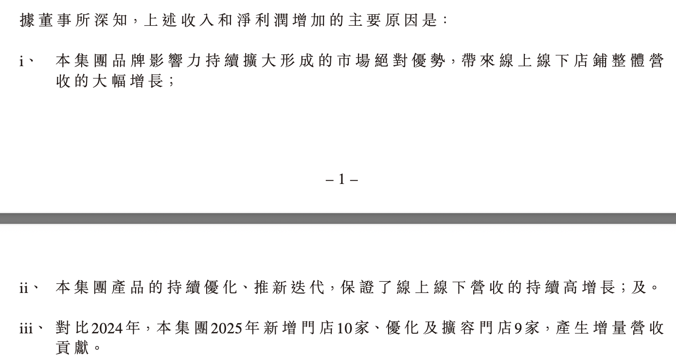 对比2024年,集团2025年新增门店10家、优化及扩容门店9家,产生增量营收贡献。