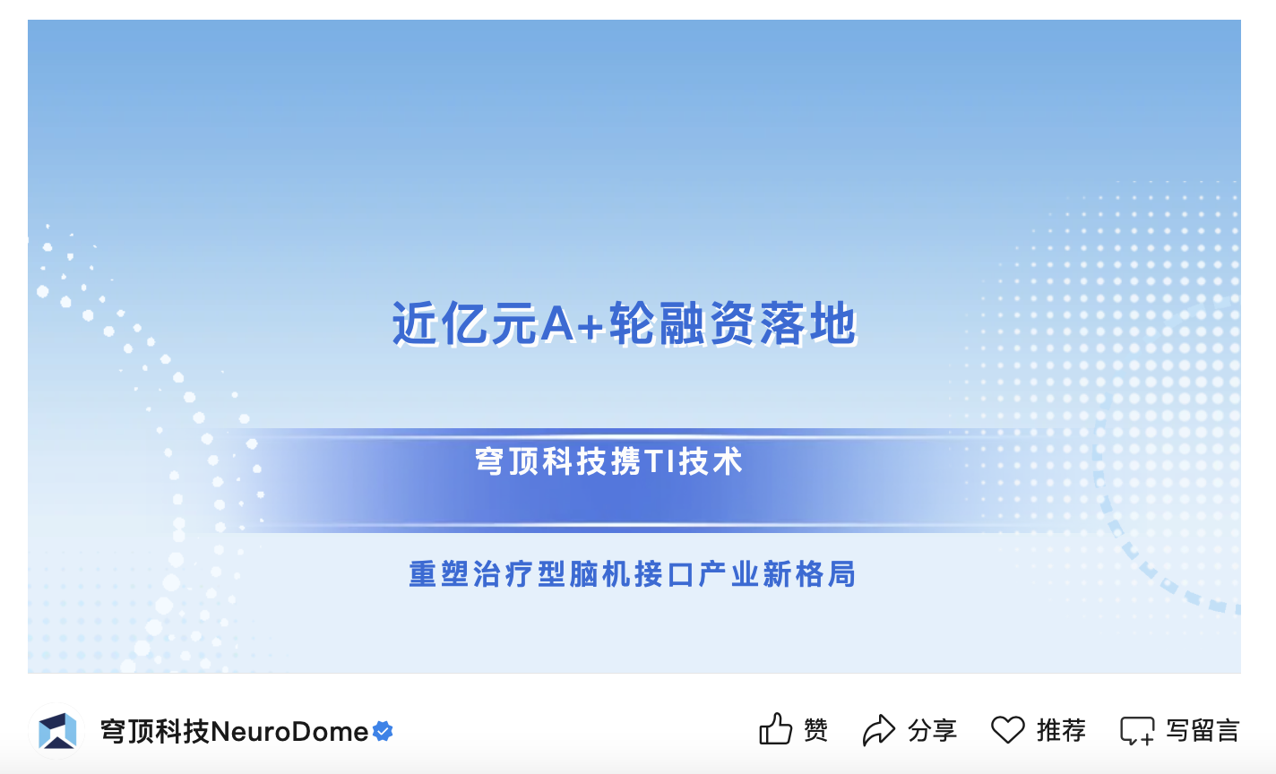 穹顶科技完成近亿元A+轮融资,携TI技术重塑治疗型脑机接口产业格局