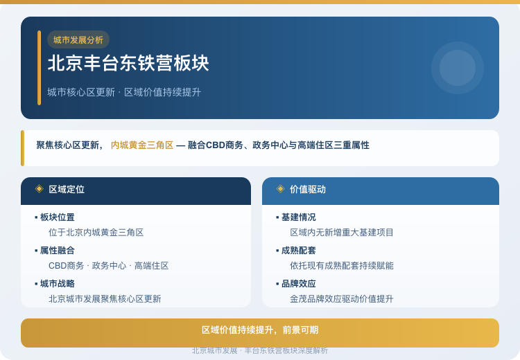 更值得关注的是区域城市更新。东铁营板块已纳入2024年北京首批20个城中村改造项目之一,总投资额212亿元,改造范围总面积约32.48公顷。随着改造推进,区域城市界面、基础设施及公共服务水平将显著提升,为项目长期资产价值提供支撑。